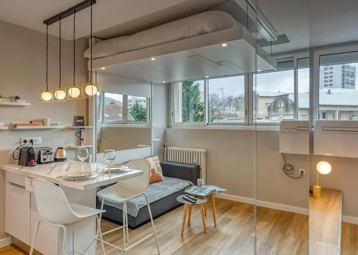 דירת גרנובל R'Apparts Studio Le Luxury N3 מציעה מטבח מצויד וכמו כן גם חדרים עם ספה, ציוד להכנת תה וקפה ואזור ישיבה. דירה זה נמצא תוך פחות מ-4.2 ק"מ על אוניברסיטת פייר מנדה פראנס, בזמן שהצריפים של בון זה כ-0.7 ק"מ משם.